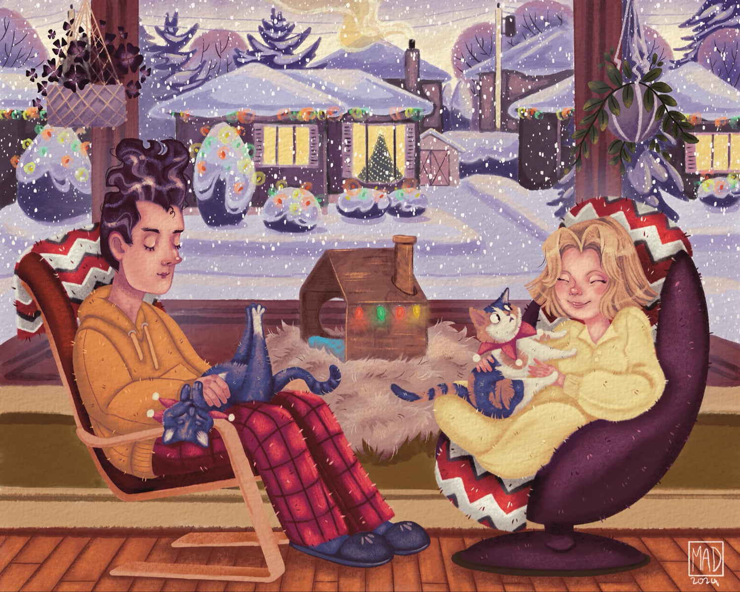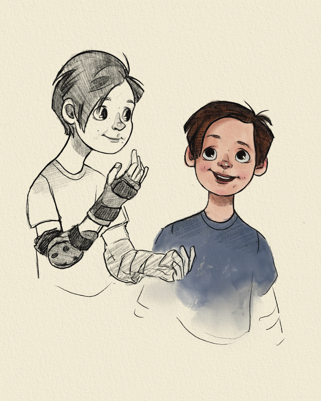 Marlaina's illustration style features soft charcoal brush strokes, and playful animal expressiveness. With this, she is able to soften the intense journey overseas, traversing dark night scenes, and frightful witches while maintaining a childlike wonder and calm to a rather exciting story!