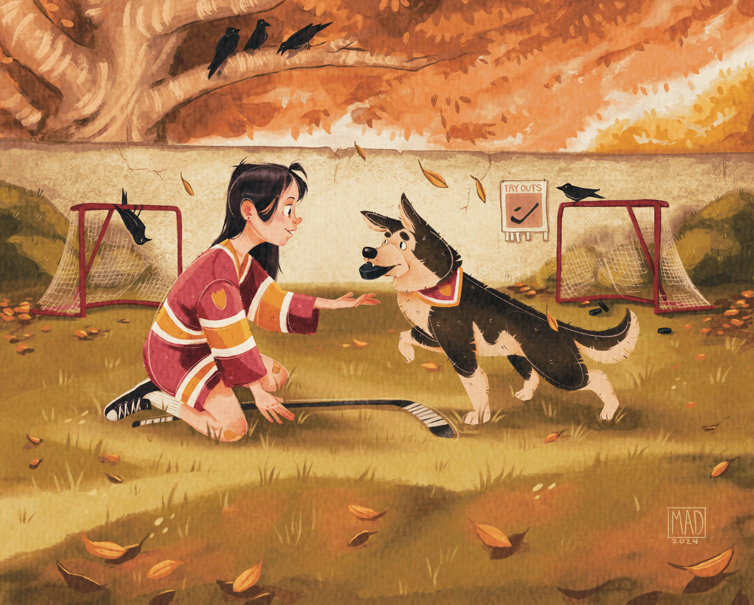 A story about practice, perseverance, and cooperation. Little Tori practices for the girl’s hockey team tryouts but her teammate, Deke the Husky, doesn’t want give up the puck!