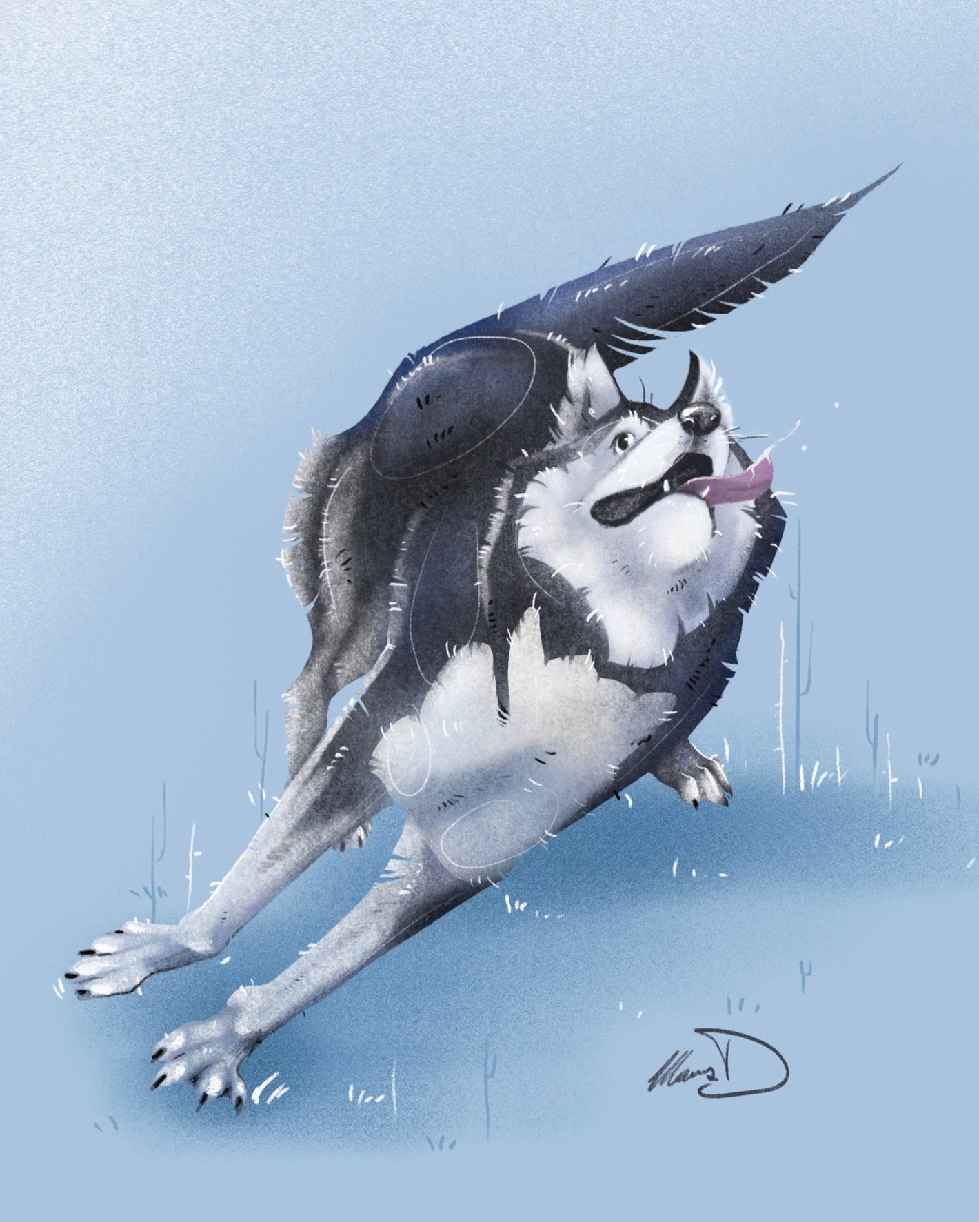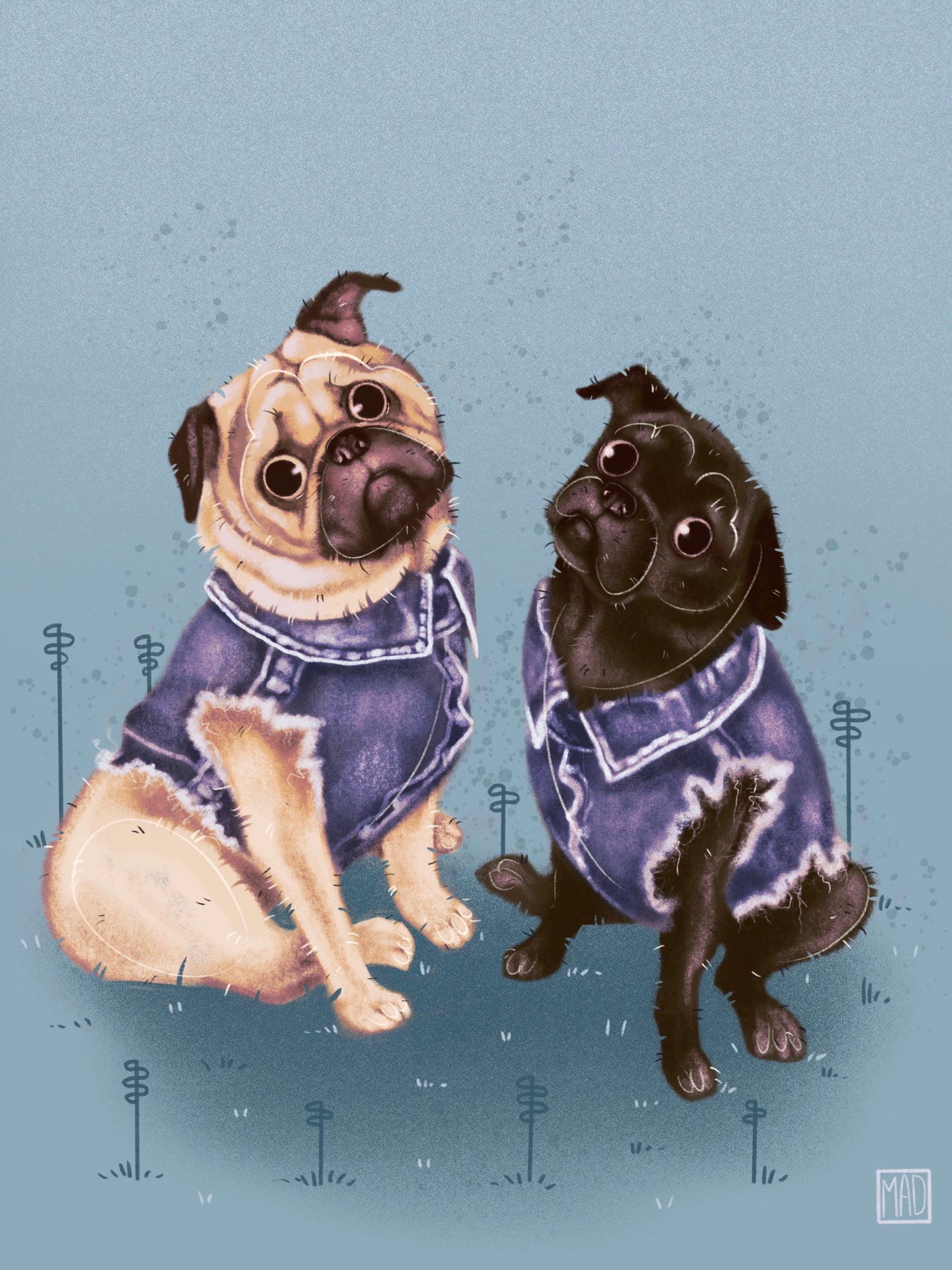 Stylized digital illustrations depict a full body posed out in an exaggerated manner to showcase your subjects unique personality. Backgrounds are one colour with minor detailing framing the subject. unless specified, all artworks are vertical orientation, 4:5 ratio to fit a standard 8”x10” frame. all artworks are 300dpi and should print clear up to 16”x20”. (additional subjects 75$USD)
