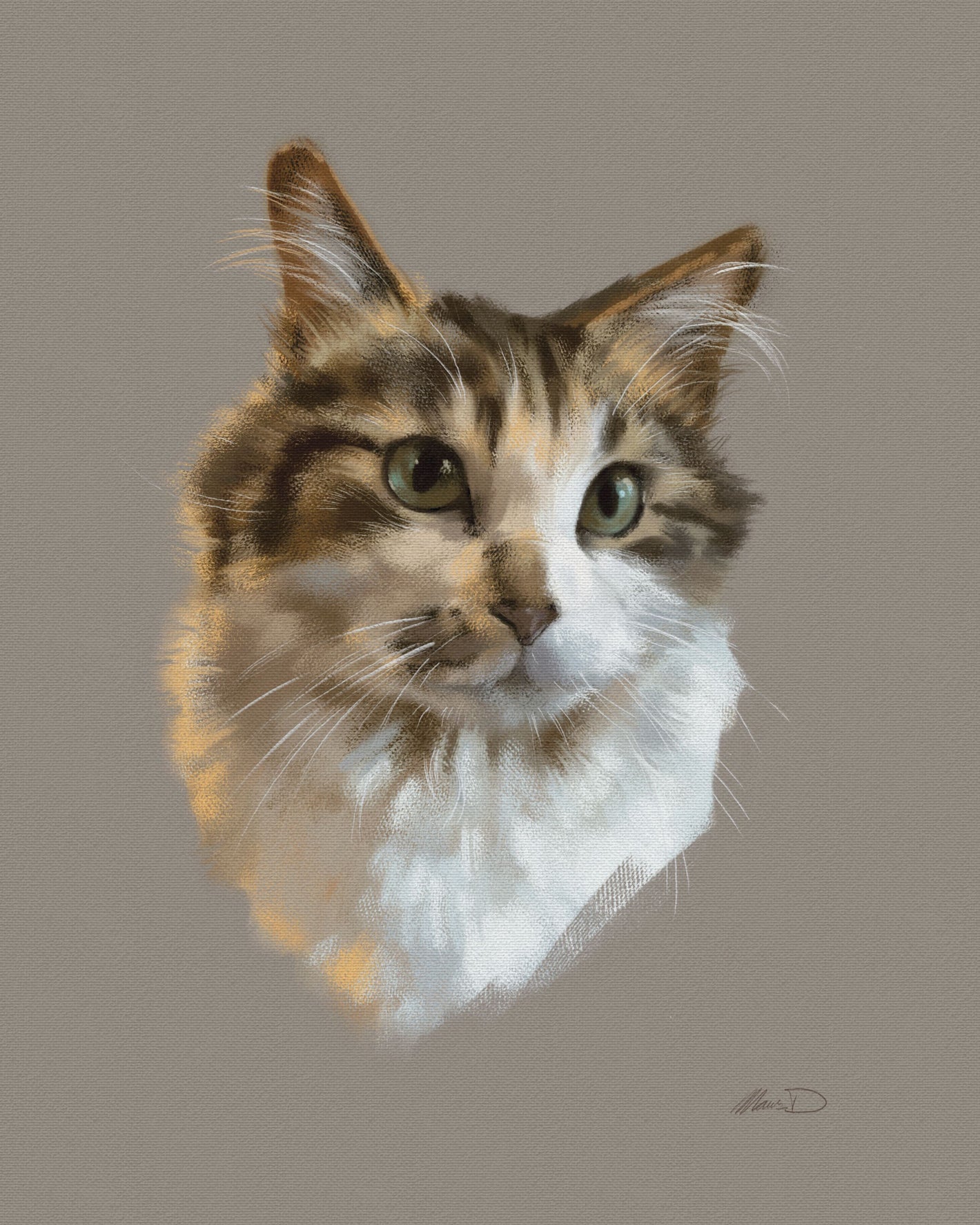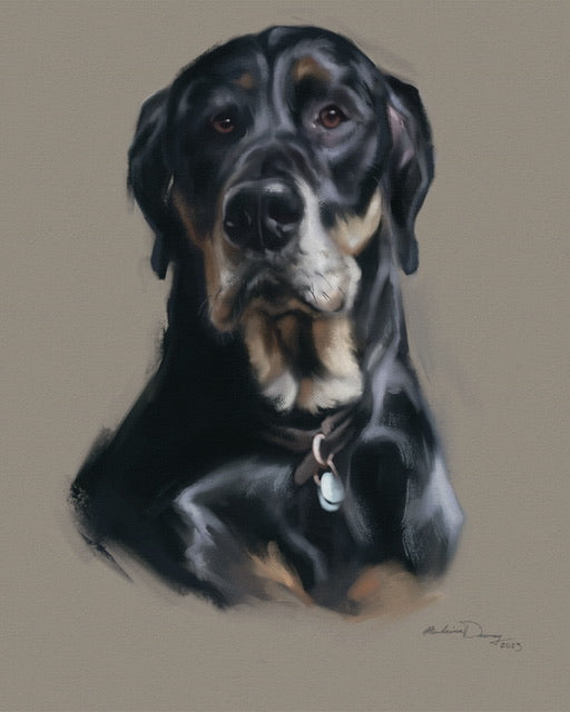 Realistic digital paintings include the head and neck. A good reference photo is necessary. Backgrounds are one solid colour of your choice. unless specified, all artworks are 4:5 ratio to fit a standard 8”x10” frame. all artworks are 300dpi and should print clear up to 12”x16”. (Price is per subject)
